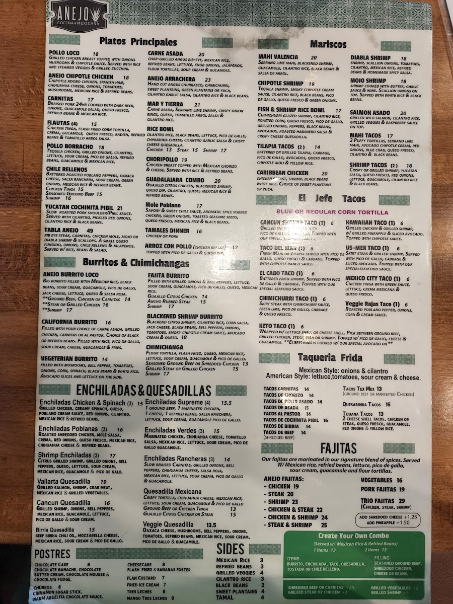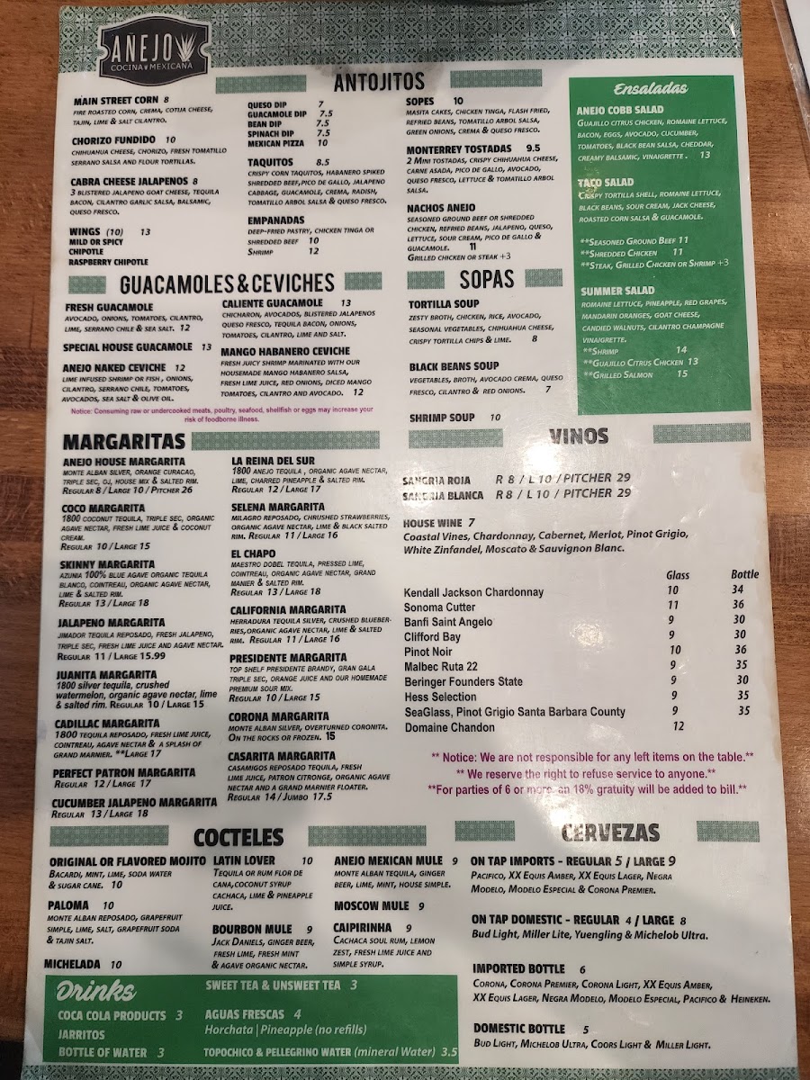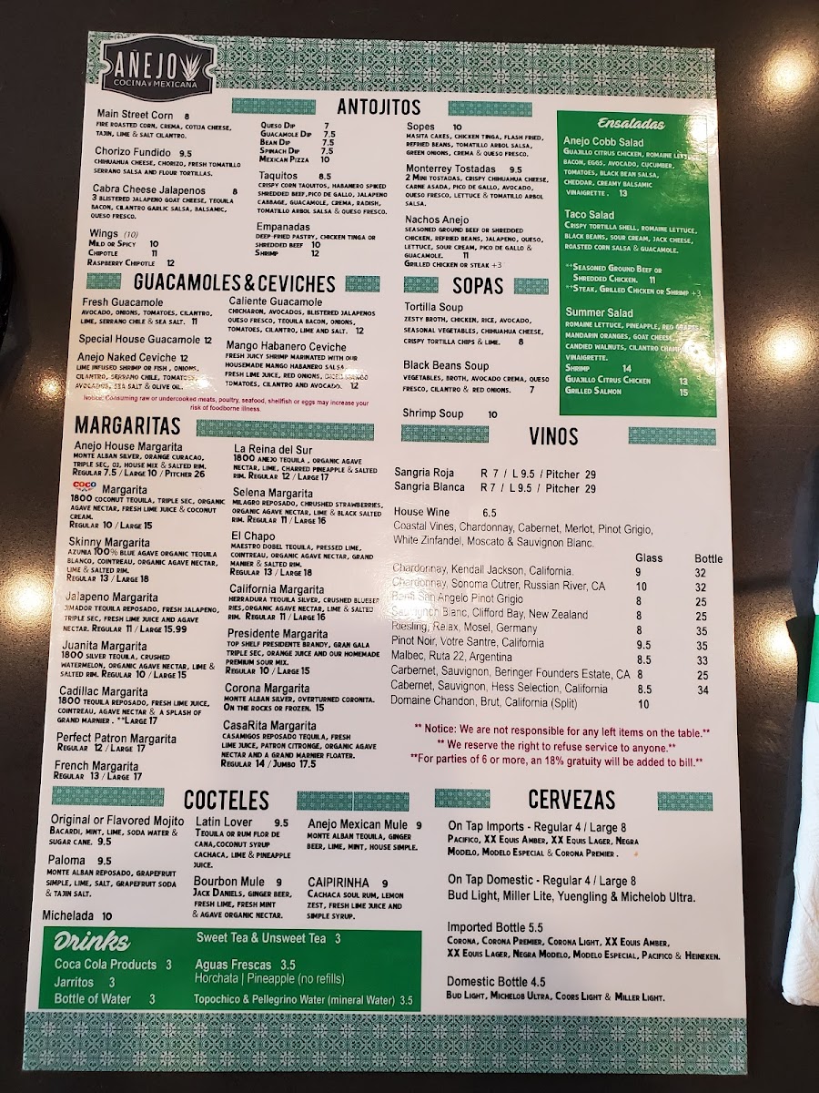 Anejo Cocina Daytona Beach Menu (2025 Update)